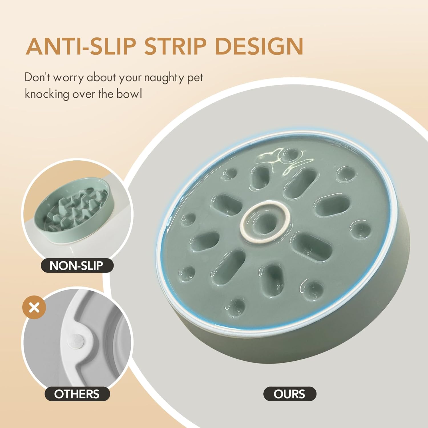 - Stable and Anti-Slip: Ceramic bowl is heavy and stable, and the anti-slip strip at the bowl's bottom can prevent bowl from sliding while your pet eating.