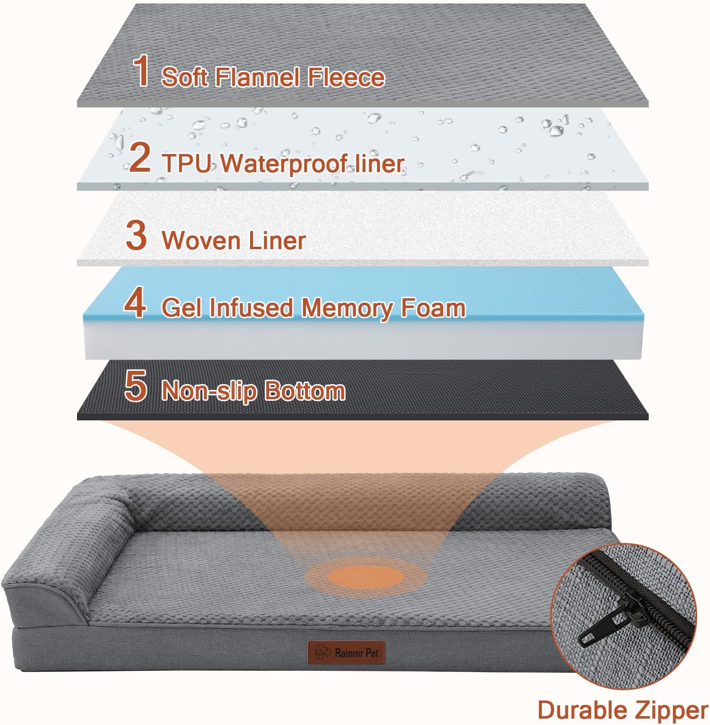 - โ Flannel Cover with Integrated Waterproof Lining: The waterproof layer is built into the inside of the flannel cover, protecting the foam from accidents, spills, or moisture. The cover is removable and machine-washable for easy cleaning.