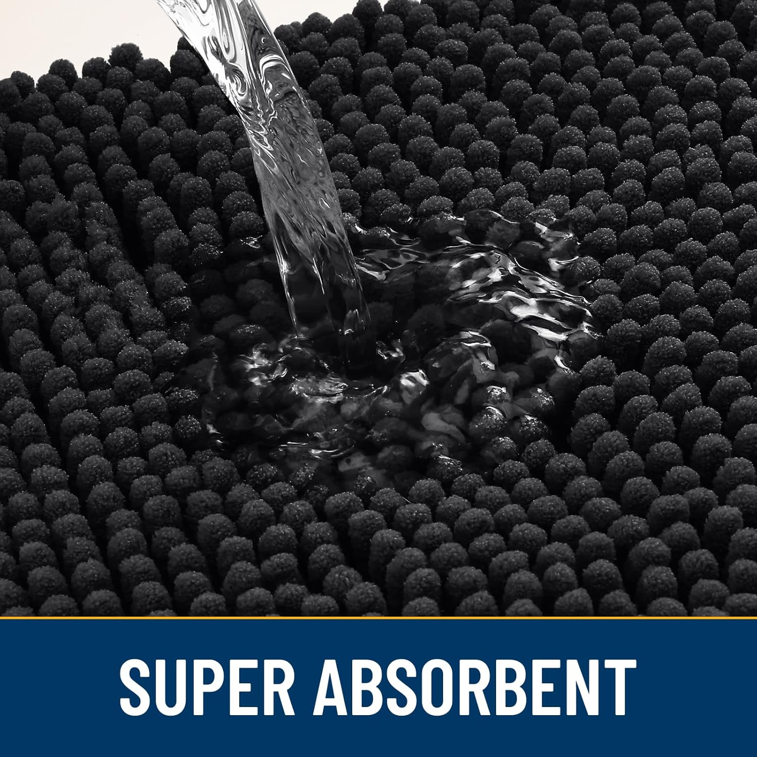 Smiry Dog Door Mat for Muddy Paws 48x30, Absorbs Moisture and Dirt Doormat, Non-Slip Washable Quick Dry Chenille Front Door Mat Indoor Entrance, Entryway Carpet for Inside Floor, Black