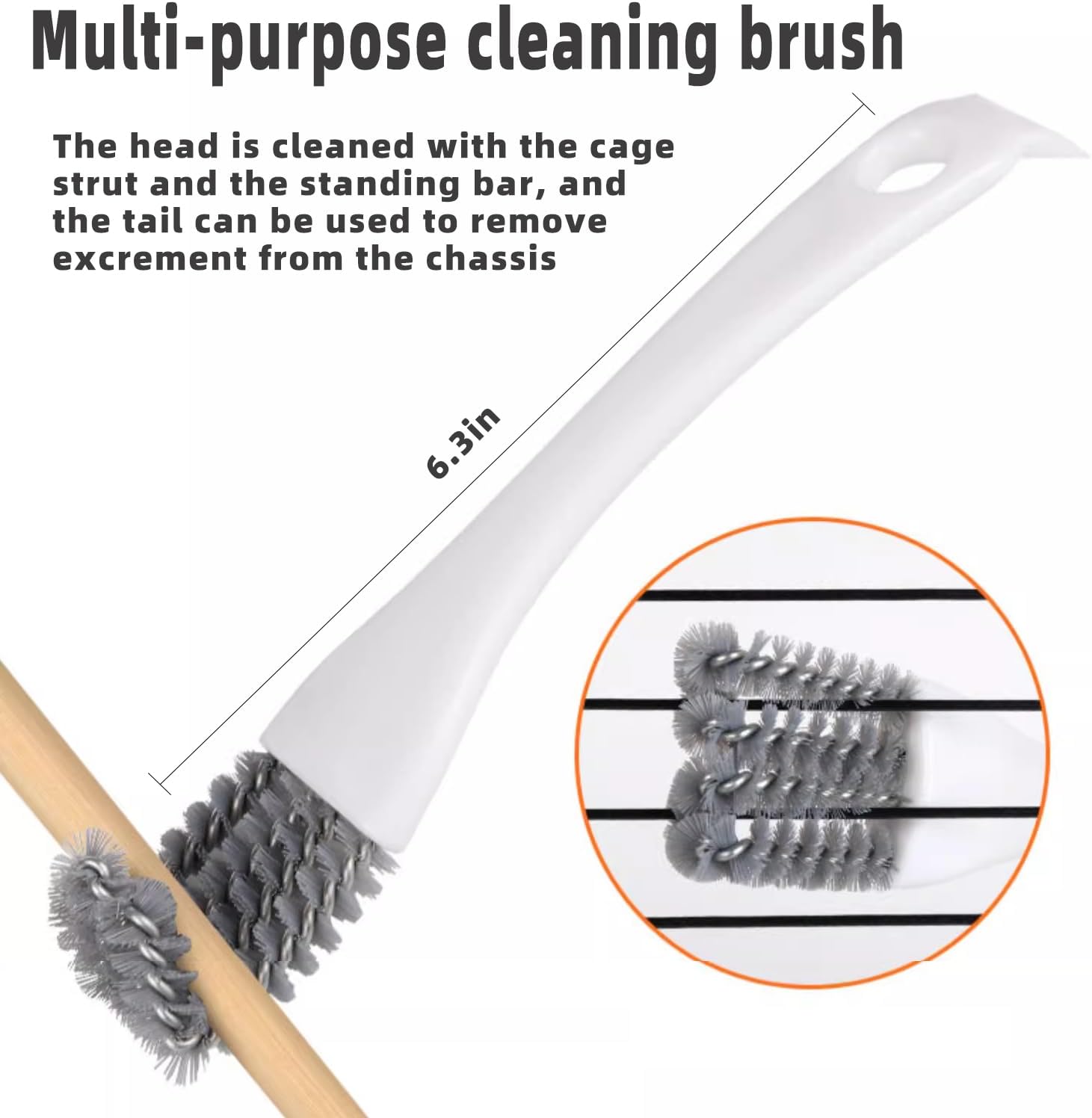 - 5-piece set: (1) stainless steel cleaning shovel, which can be used to shovel off the feces of small animals (2) cage post cleaning tool, which can be used to clean feces on the cage post (3) stainless steel wire brush, which has very strong cleaning power and can clean feces anywhere, but need to be used with care! (4) Multi-functional brush, which can brush the feces on the pole or cage post (5) Small broom, which is convenient to clean up the feces you have cleaned