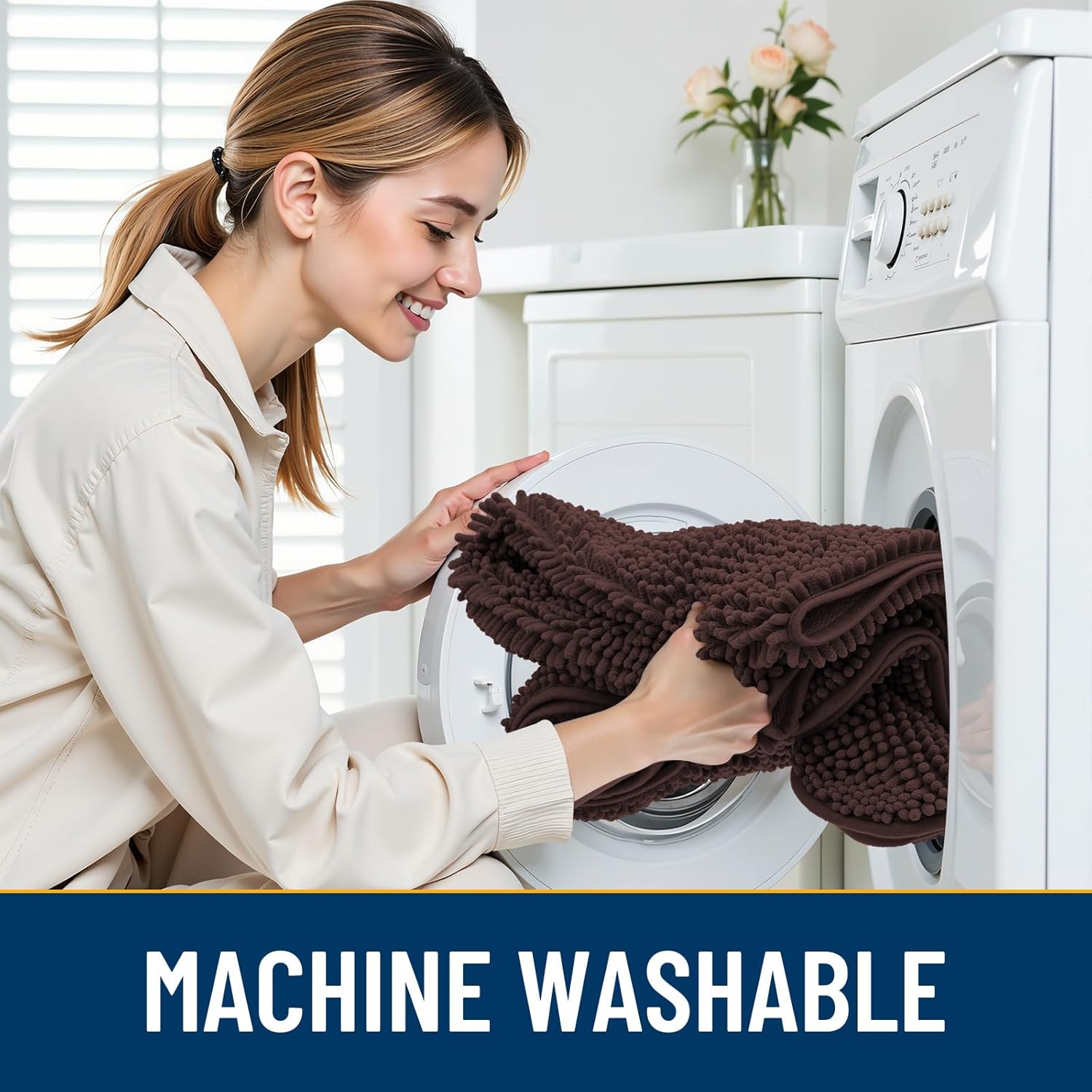 Smiry Dog Door Mat for Muddy Paws 40x32, Absorbs Moisture and Dirt Doormat, Non-Slip Washable Quick Dry Chenille Front Door Mat Indoor Entrance, Entryway Carpet for Inside Floor, Brown