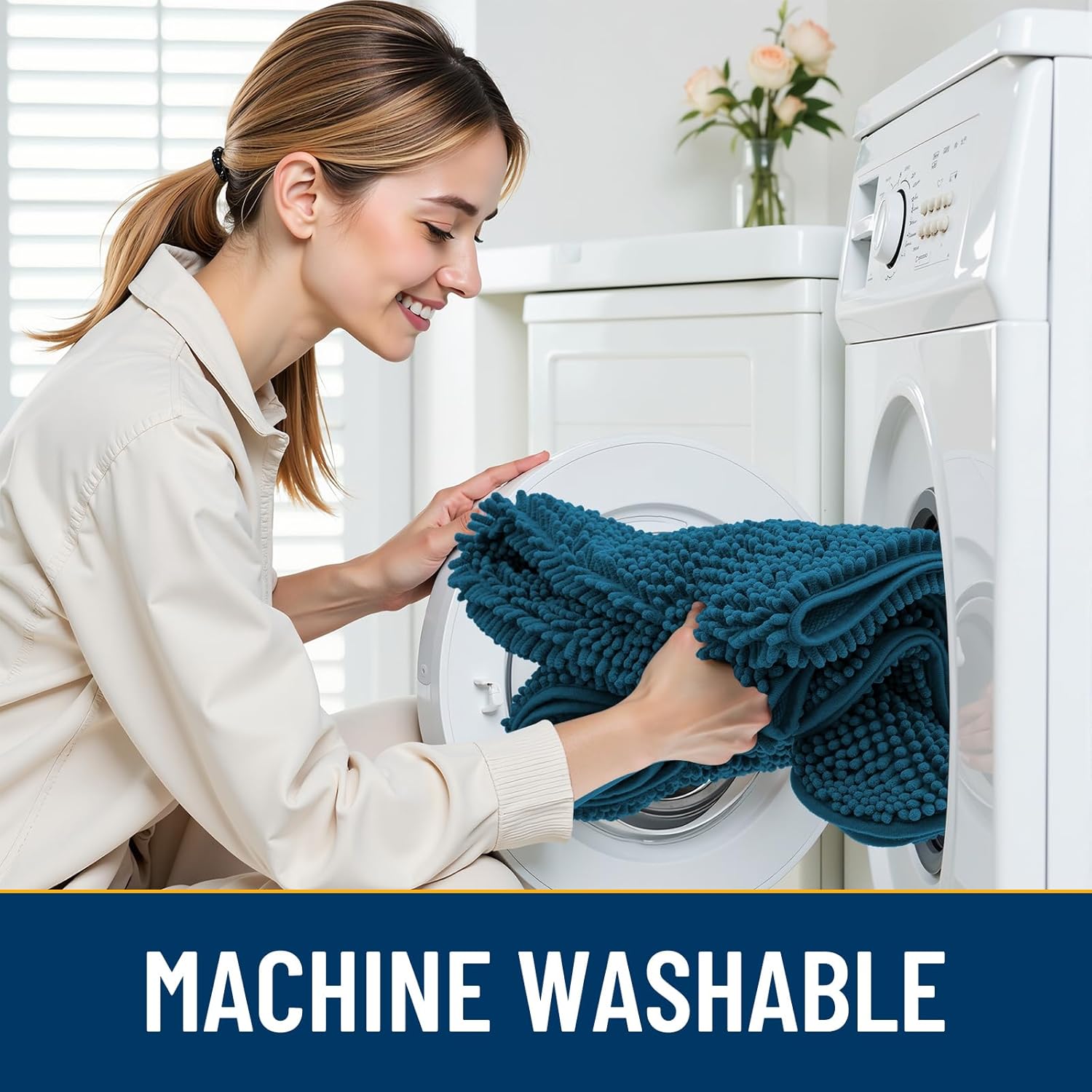 Smiry Dog Door Mat for Muddy Paws 40x32, Absorbs Moisture and Dirt Doormat, Non-Slip Washable Quick Dry Chenille Front Door Mat Indoor Entrance, Entryway Carpet for Inside Floor, Atlantic Blue
