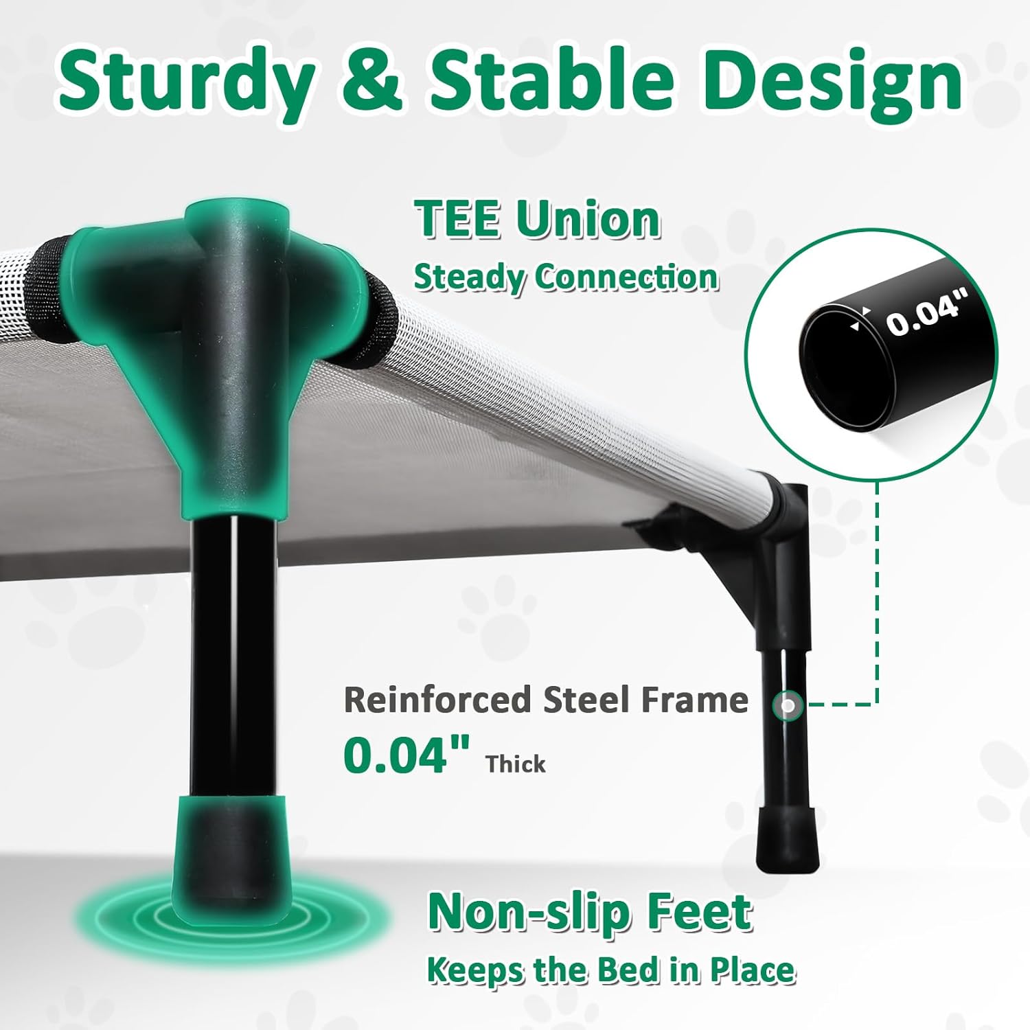 - BREATHABLE TESLIN MESH: This outdoor dog bed comes with breathable and durable Teslin mesh, provides airflow and firm support to relieve joint pressure. Our dog cot bed is suitable for dogs of all life stages, from puppy to the senior