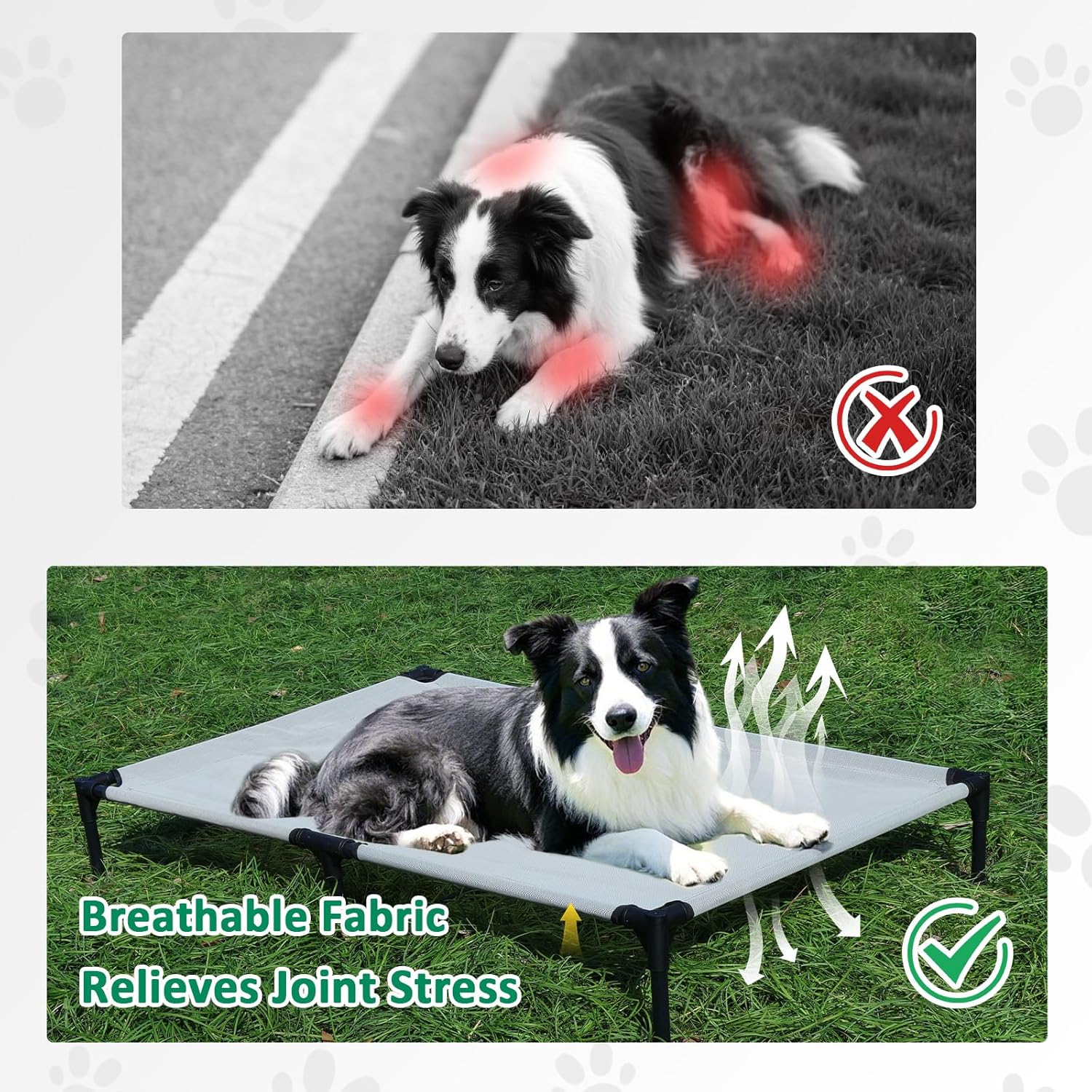 Elevated Dog Cots Beds for Large Dogs, Raised Outdoor Dog Bed with Frame, Lifted Pet Hammock Beds with Breathable Mesh, Non Slip, Easy to Clean, Grey