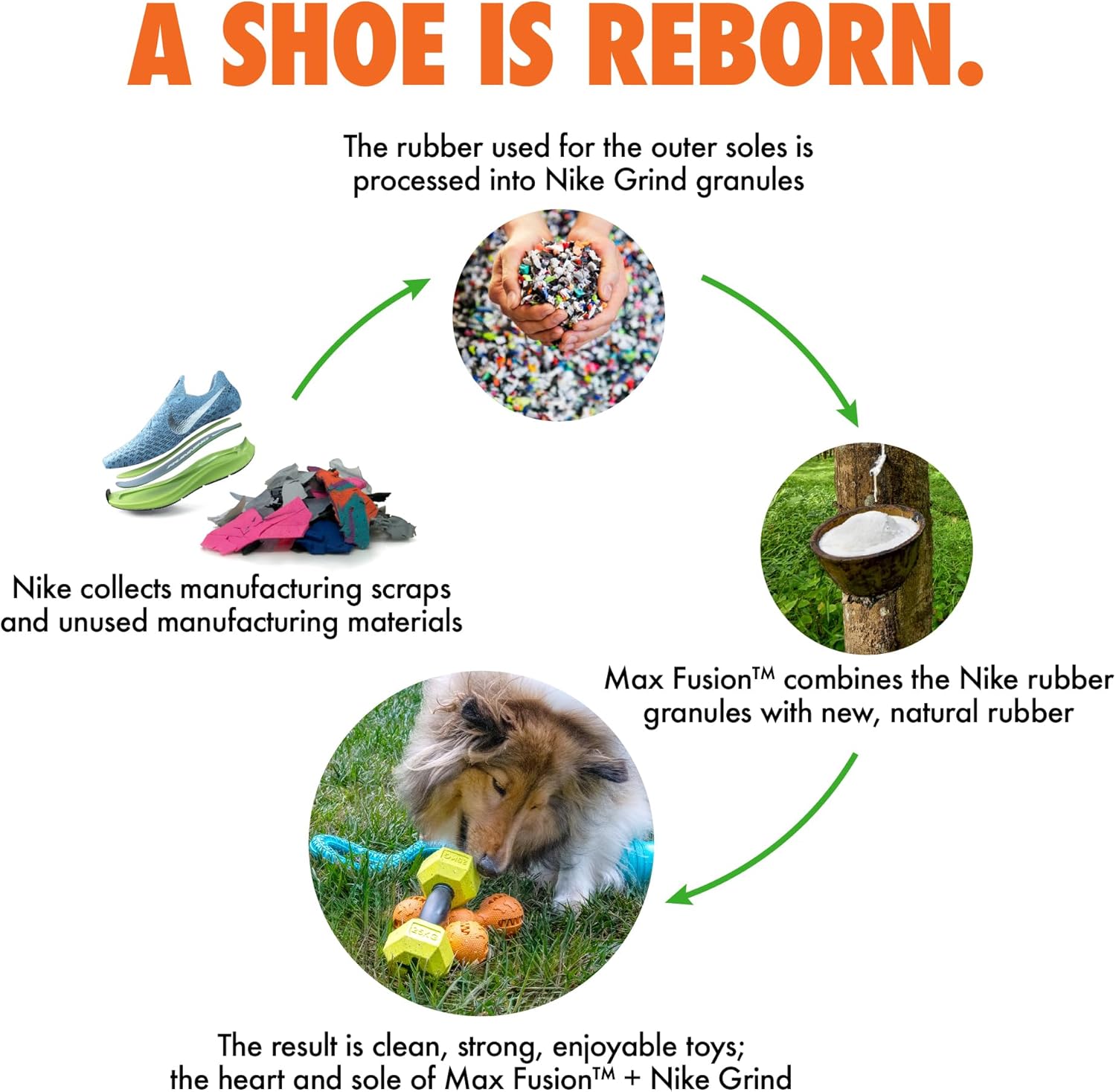 - SAFE & DURABLE RUBBER MATERIAL: Crafted with a durable blend of Nike Grind rubber and natural rubber, this strong dog toy for aggressive chewers is built to last through repeated play sessions. The thick rubber material provides a firm yet flexible feel thatās safe for your dogās teeth and gums, making it a great option for teething puppies or adult dogs that love to gnaw. No sharp edges, no weak spotsājust long-lasting fun.