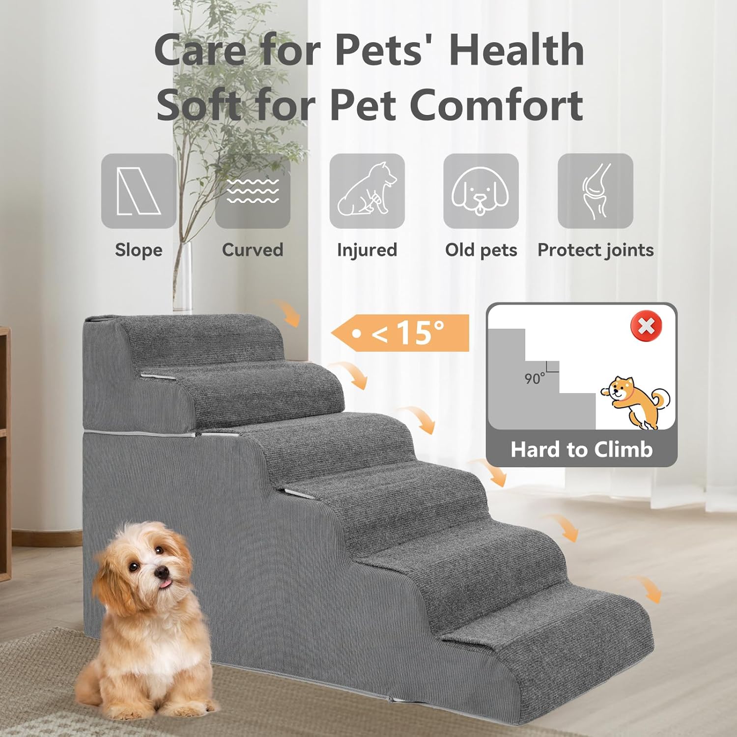 - Premium Carpet for Paws and Play: Our dog ramp is covered by 370g carpet fabric on each slope,which is not only durable but also adds extra traction for your petβs paws, preventing slips during their climb. Paired with high-density 25D memory foam that maintains its shape with a 98%+ rebound rate, these steps are a luxurious haven for your furry friend