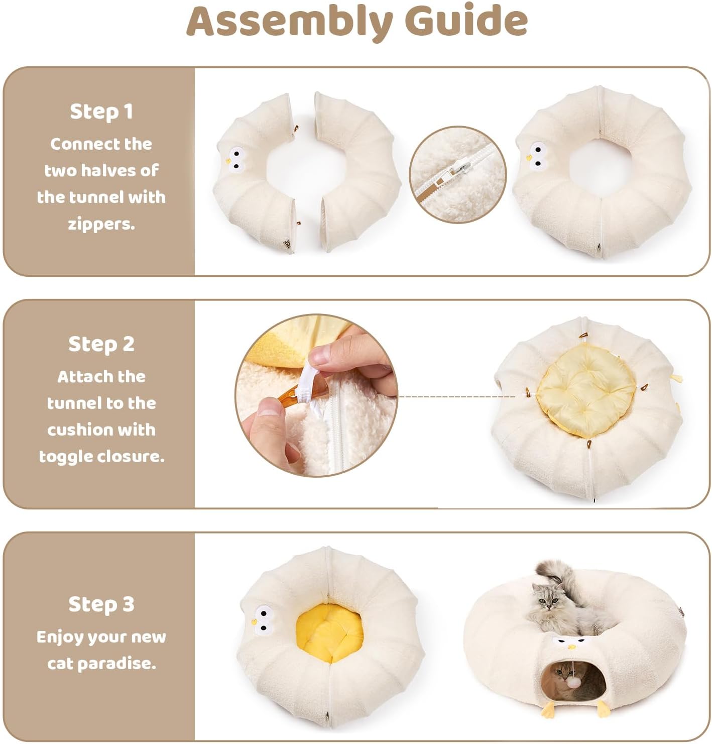 EHEYCIGA Cat Tunnel Bed for Indoor Cats, Cute Cat Donut Toy Tunnel for Small Large Cats with Washable Circle Cushion, Peekaboo Pet Cave Play Tunnel for Kitten, Puppy, Rabbit