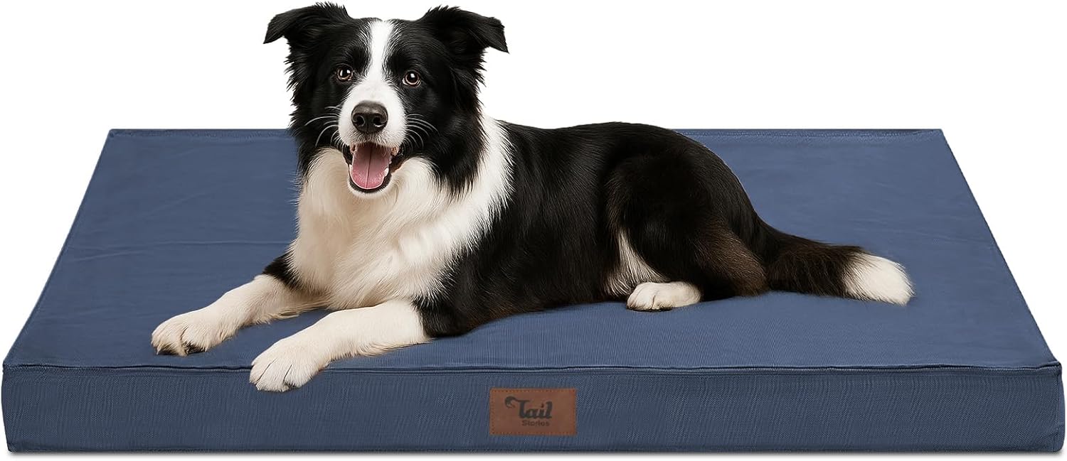 - Oxford Fabric: Tail Stories waterproof dog bed is made of 600D oxford fabric with PVC, features in premium-quality, cooling. Suitable for dog crates of 36" x 23"