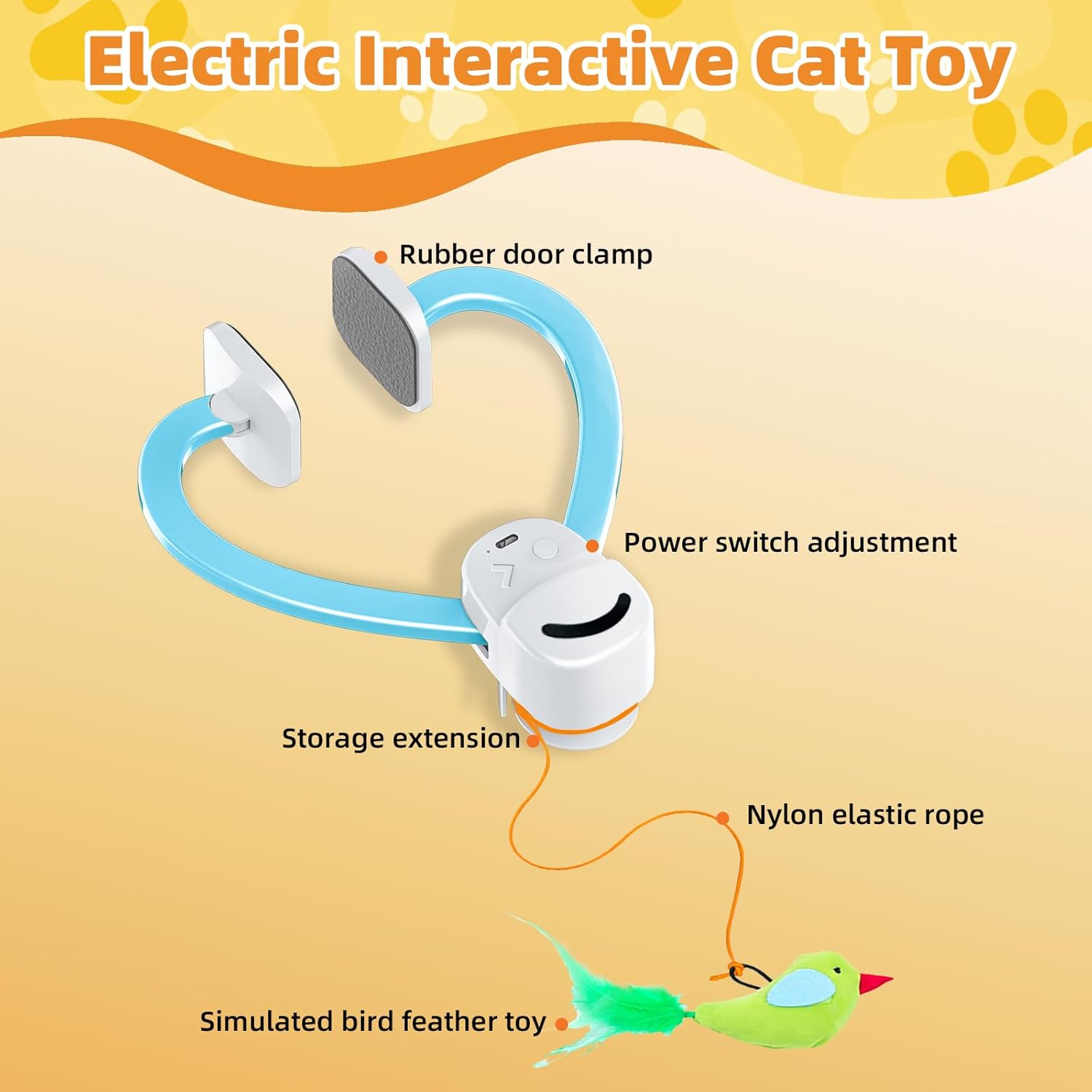 - Cat Doorway Toy Complete Set – Ready to Play Right Out of the Box Includes: ✅ 1x Flying bird Toy for Cats(attracts cats with realistic motion✅ 2x Elastic Strings (adjustable length for different play styles) ✅ 1x USB Charging Cable (convenient rechargeable) ✅ 1x Color Box + User Manual (easy setup)Enrichment for indoor cats perfect for keeping cats entertained.