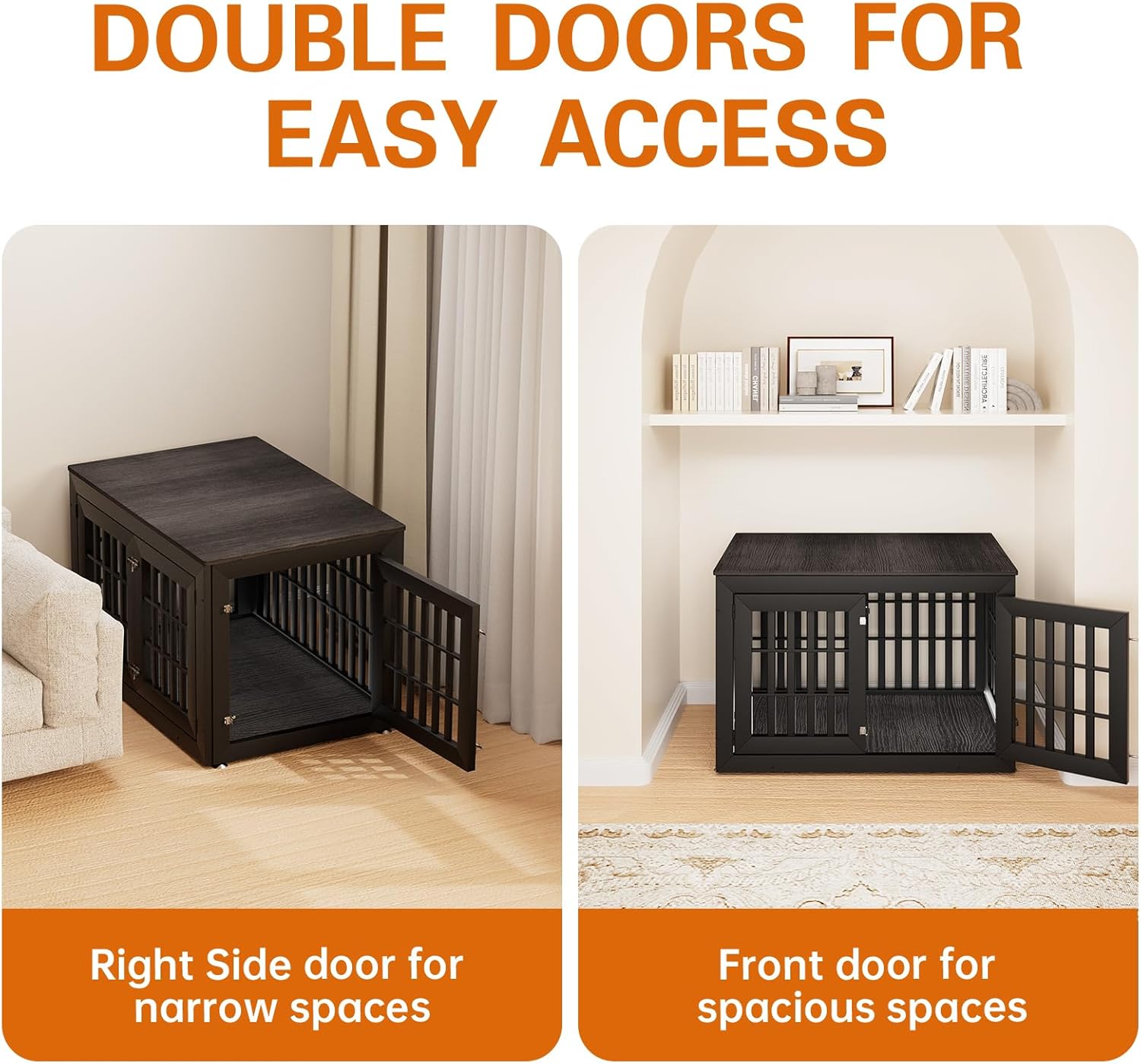 - 【Double Doors Design】The dog kennel furniture has a front door and a side door, your pet will go in and out easily with double doors. The double-doors design can adapt to more different space environments. You can decide whether to open the front door or the side door according to your needs