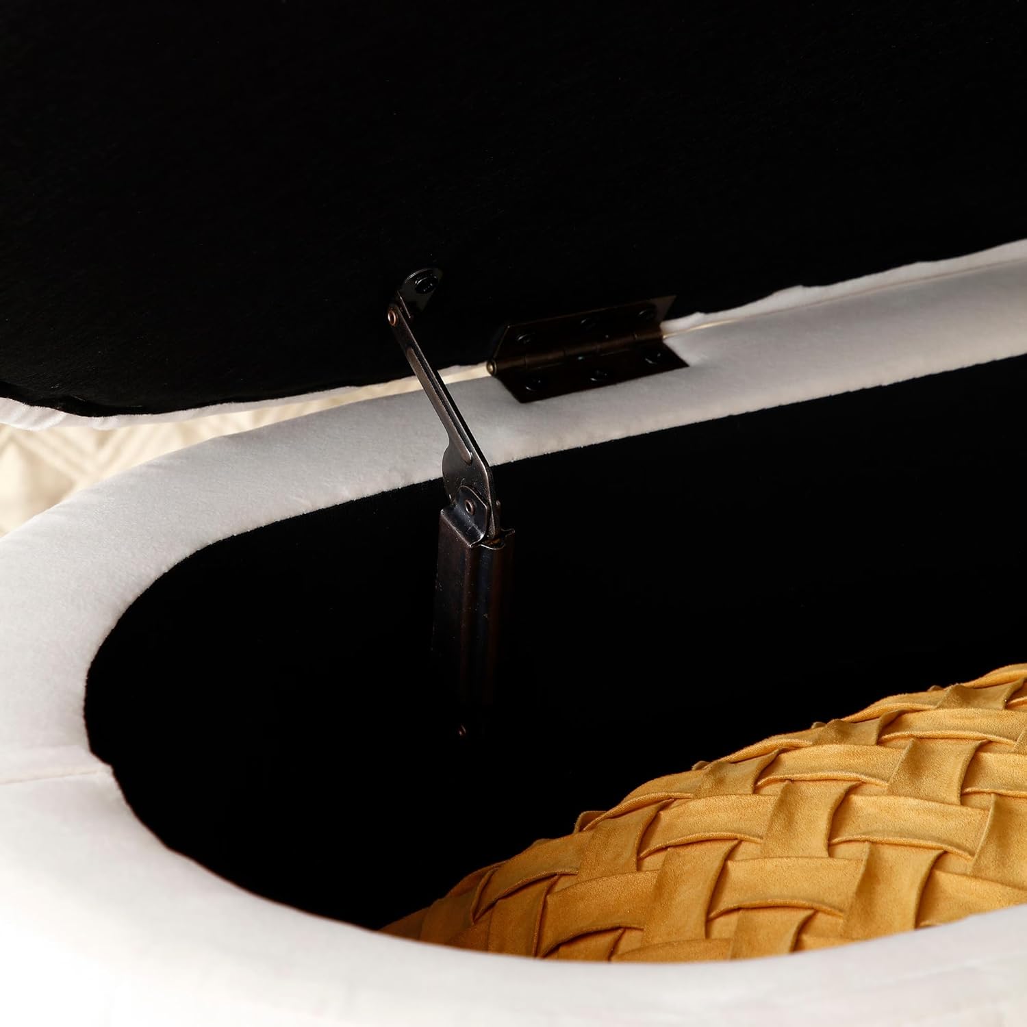 - 【Elegant & Modern Design】Featuring a sleek oval shape with smooth corners and sturdy gold metal legs, this ottoman blends sophistication and style effortlessly. Elevates your living room, bedroom, or entryway decor.