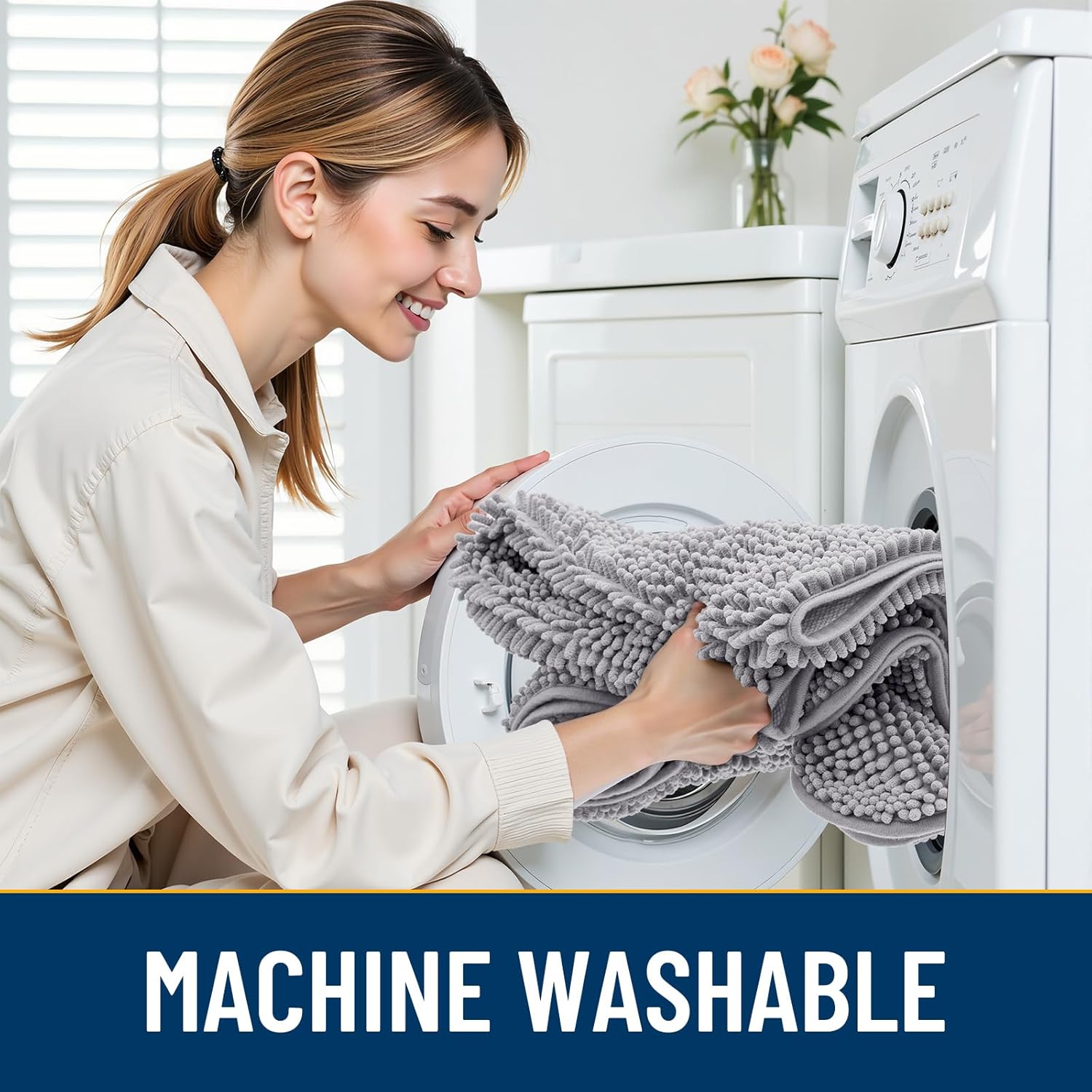 - [Absorbent and Dirt Trapper] High-density chenille dog mat, super absorbent and dirt-catching, whether wet after shower, muddy or moisture bring back by dogs, it can absorb well, so that you and your favorite pet can say goodbye to the wet and mud. It's an excellent choice for use as an entryway door mat, a welcome door mat or a dirt-trapping door mat.