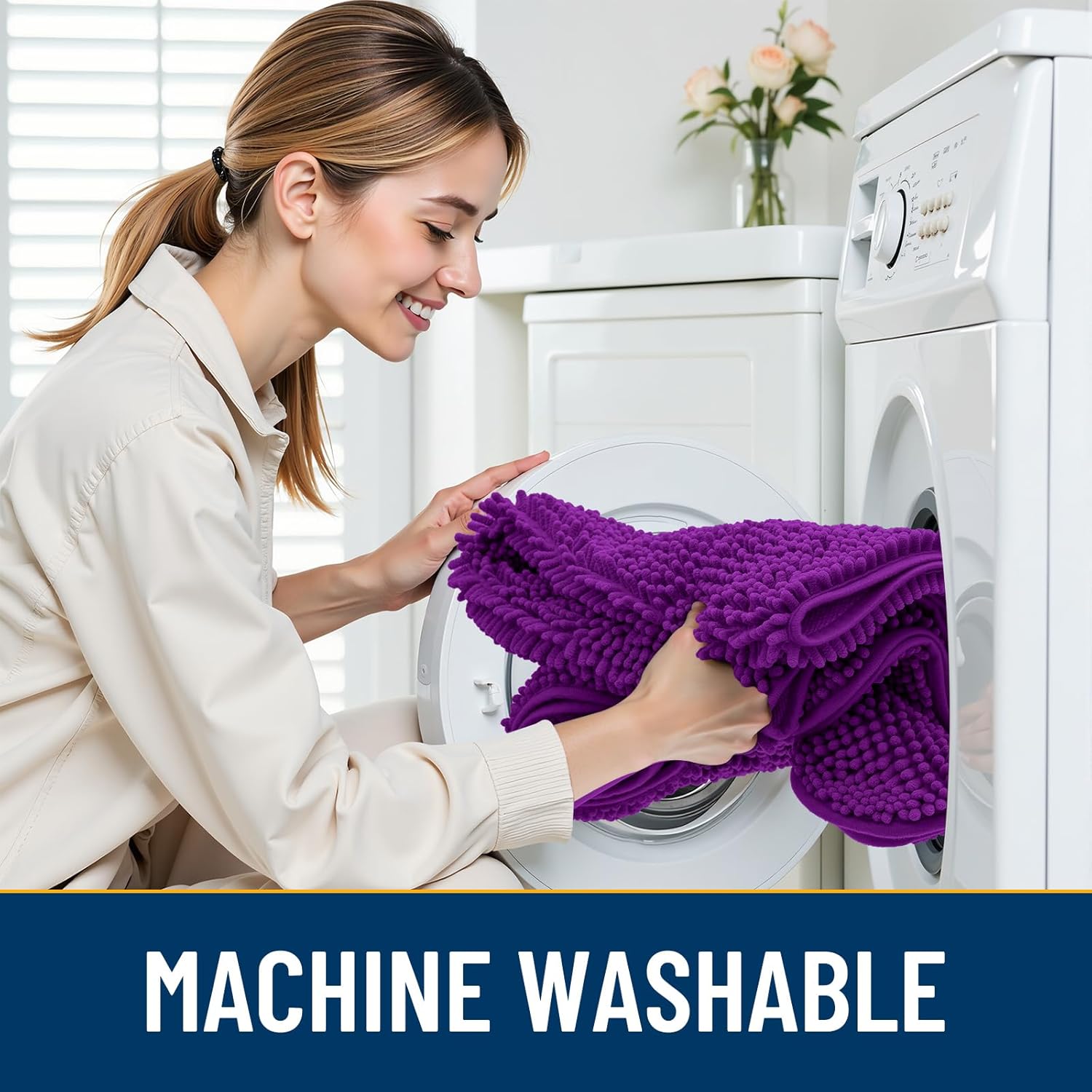 Smiry Dog Door Mat for Muddy Paws 30x20, Absorbs Moisture and Dirt Doormat, Non-Slip Washable Quick Dry Chenille Front Door Mat Indoor Entrance, Entryway Carpet for Inside Floor, Purple