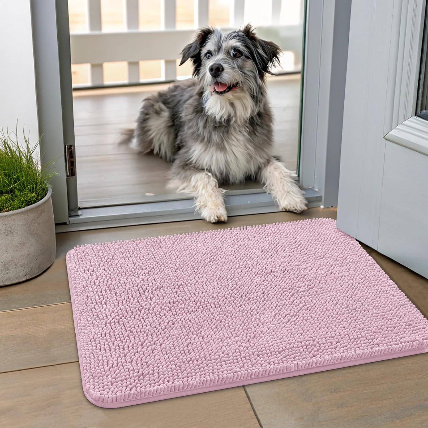 Smiry Dog Door Mat for Muddy Paws 24x16, Absorbs Moisture and Dirt Doormat, Non-Slip Washable Quick Dry Chenille Front Door Mat Indoor Entrance, Entryway Carpet for Inside Floor, Dusty Rose