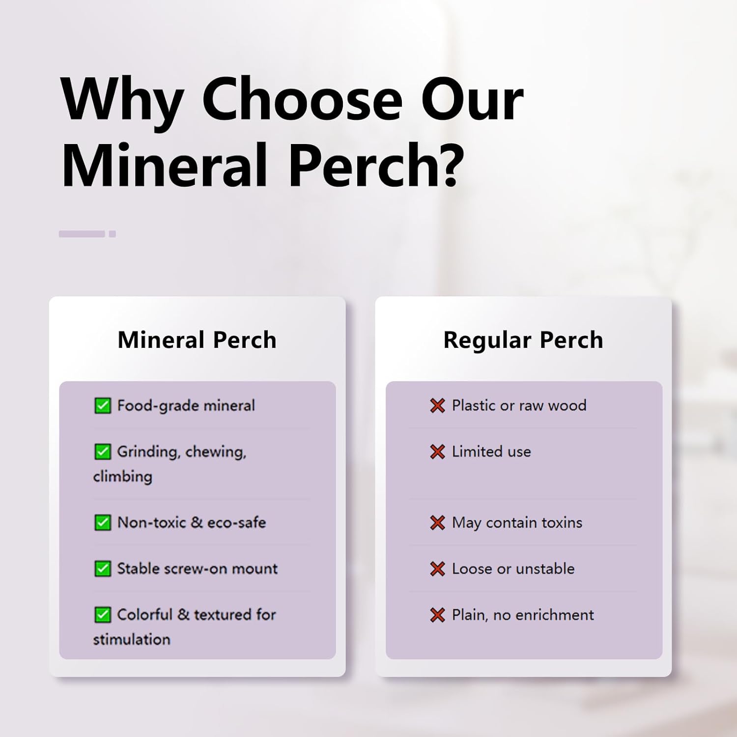 - โ 100% Natural & Safe Materials ---- Crafted from 100% porous natural minerals and food-grade coloring, our bird perch toys are completely safe for your feathered friend. Colors wonโt fade even after washing. A trusted choice for parrot cage accessories that prioritize pet safety.