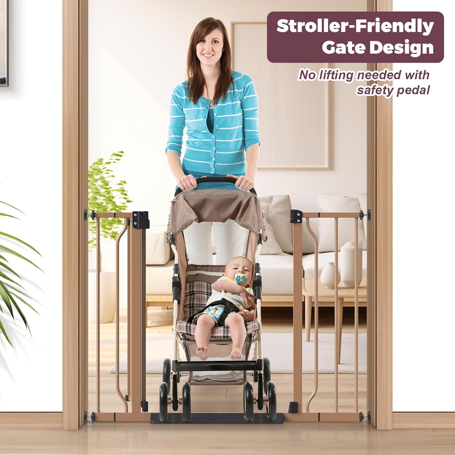 29"-40" Baby Gate for Stairs, Auto Close Stroller Friendly Dog Gate Indoor for Doorways, Pressure Mounted Baby Gate, Easy Walk Through Gate for Children & Pets, Brown