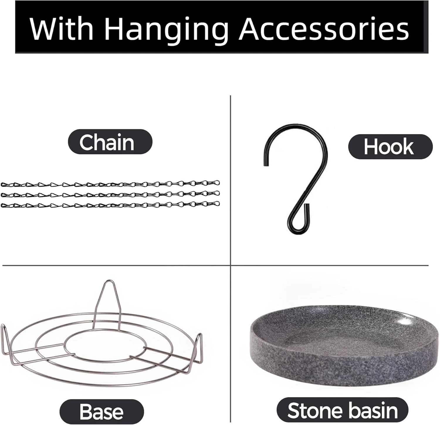 - Unique 2 - in - 1 design : Use it as a hanging bird bath with the chain & hook for tree or patio setups. Or remove the chain and place the stone basin directly on the ground for use as a bird bath and feeder
