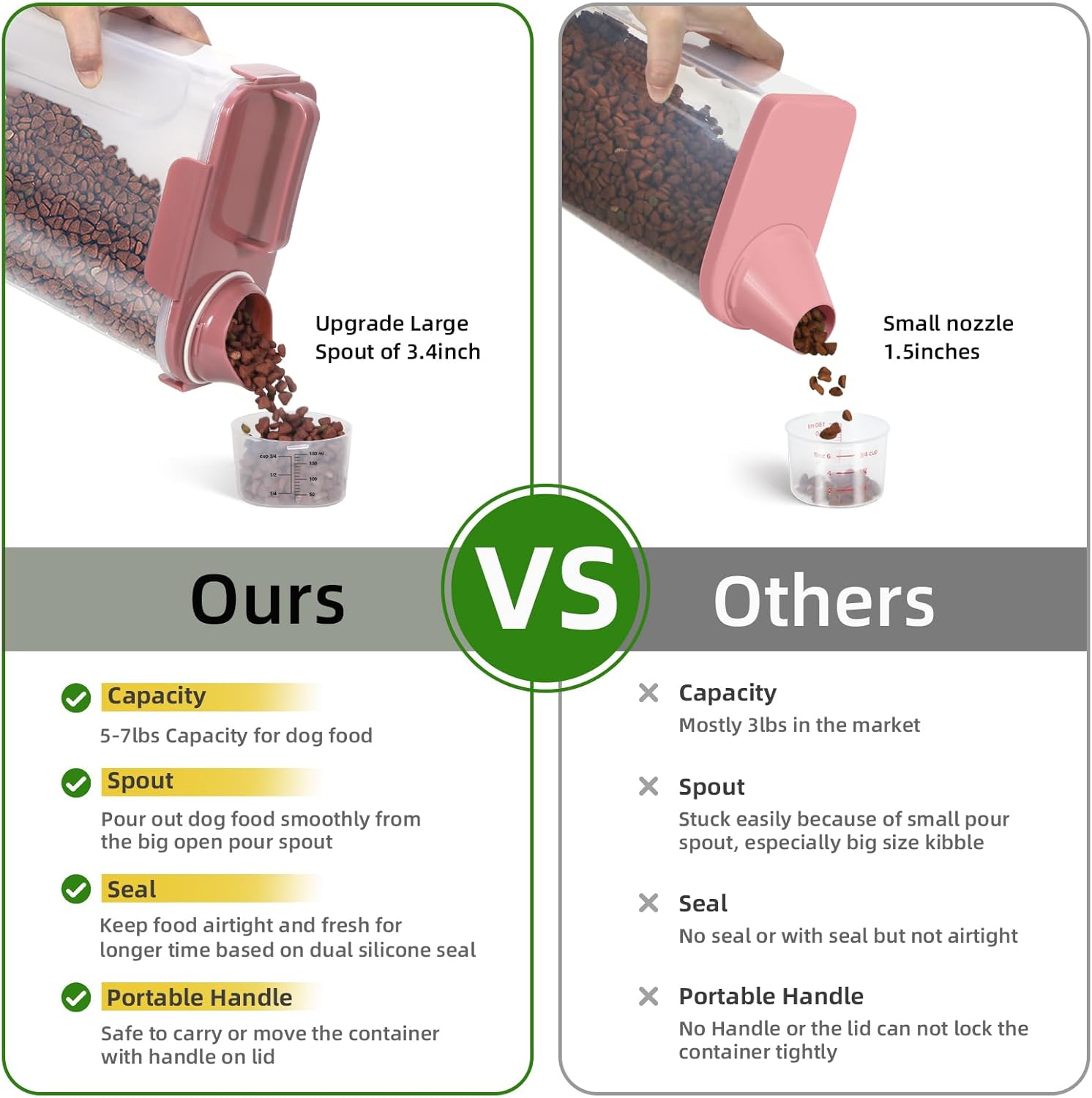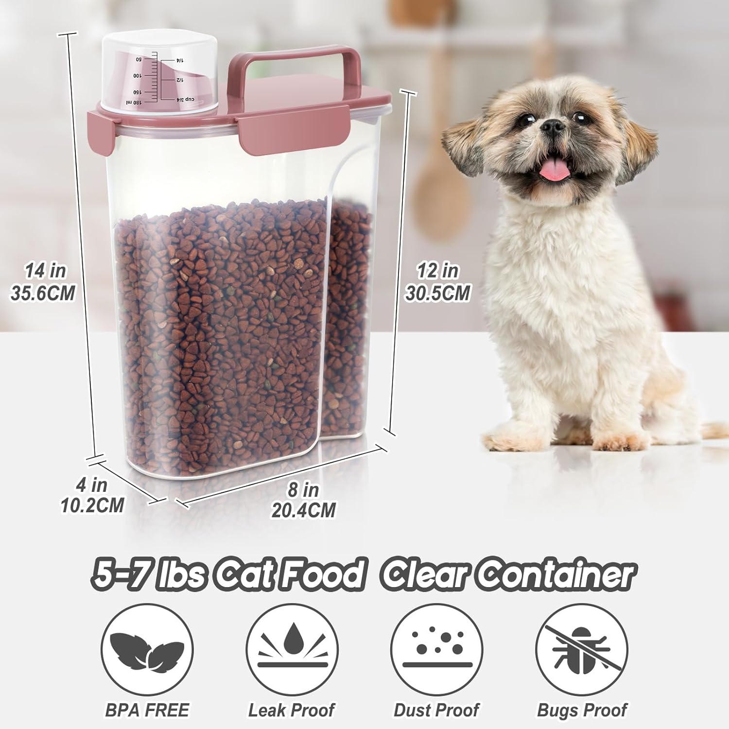 - WHAT YOU GET?:The small dog food bin comes with a 1-pack airtight pet food storage container with a clear measuring cup and an upgraded large spout for easy pouring of pet food at any time. This dog food storage containers can be a gift The perfect gift for any home.