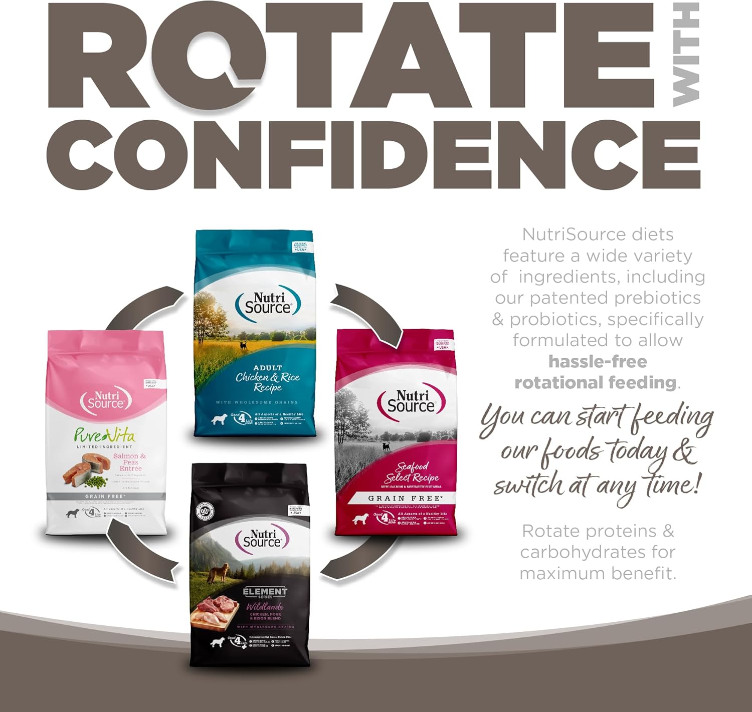 - As a member of our grain inclusive series, NutriSource Chicken and Rice Dry Dog Food is formulated to meet AAFCO guidelines for senior dogs