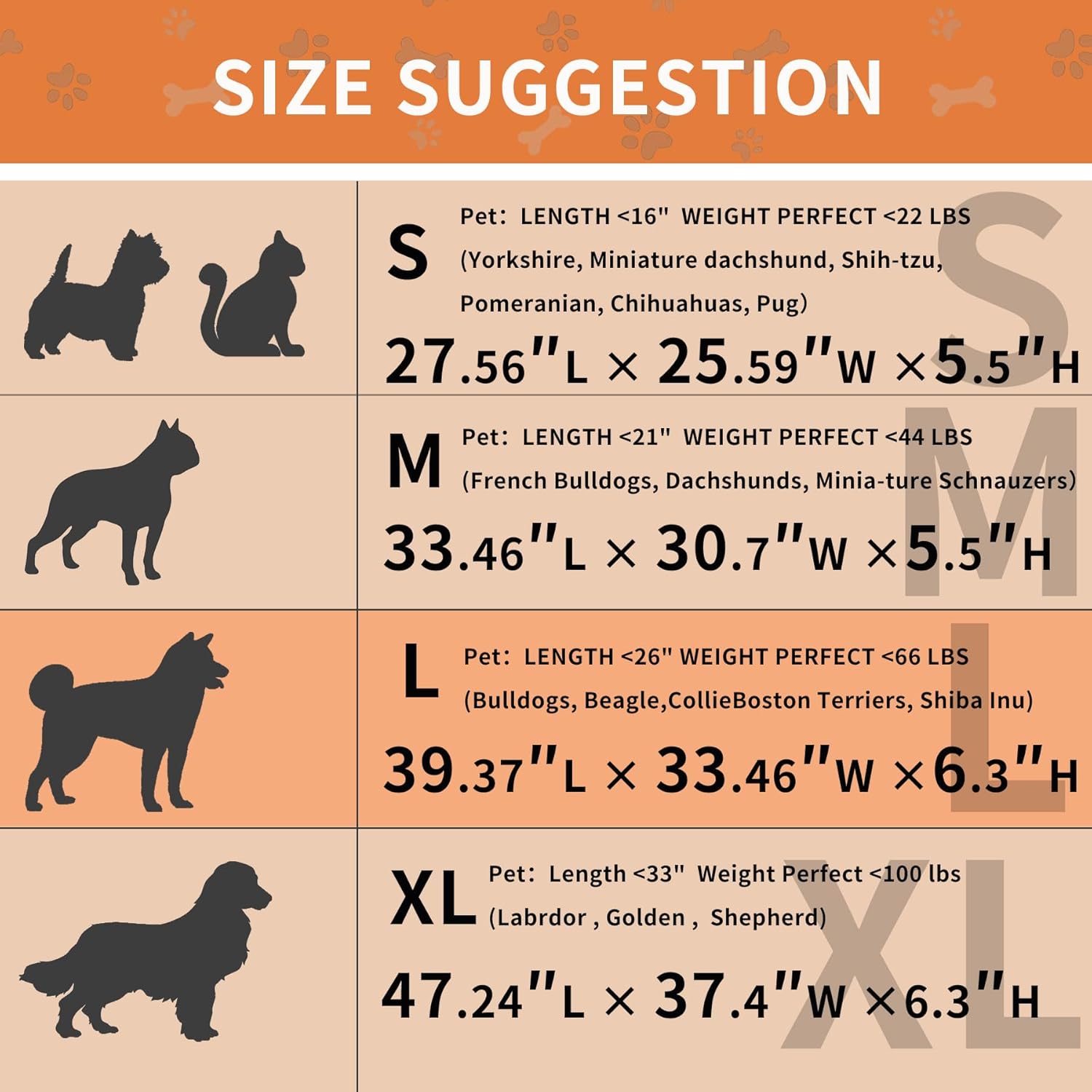 - MULTIPLE SIZES AND USES: This couch pet bed is available in 4 sizes S: 27.56 inches x 25.59 inches, suitable for cats and small dogs.M: 33.45 inches x 30.71 inches, suitable for medium-sized dogs.L: 39.37 inches x 33.45 inches for medium or large dogs.XL: 47.24 inches x 37.4 inches for large dogs.As a non-slip couch bed for dogs, it can be easily fixed on the sofa, in addition, four season universal dog couch bed can also be used as dog bed for car and dog crate pad.