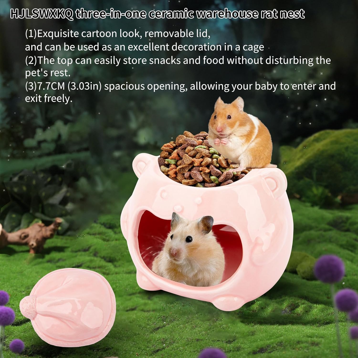 - 1. Spacious & Comfortable Hideout Measuring 5.12×5.12×4.33 inches, this ceramic hamster hideout provides ample space for Syrian hamsters, dwarf hamsters, pet rats, gerbils, and other small pets. The 1.97*3.03-inch (5*7.7cm) wide entrance easily accommodates larger breeds like Syrian hamsters. Pro tip: Measure your pet's size to ensure the perfect fit!