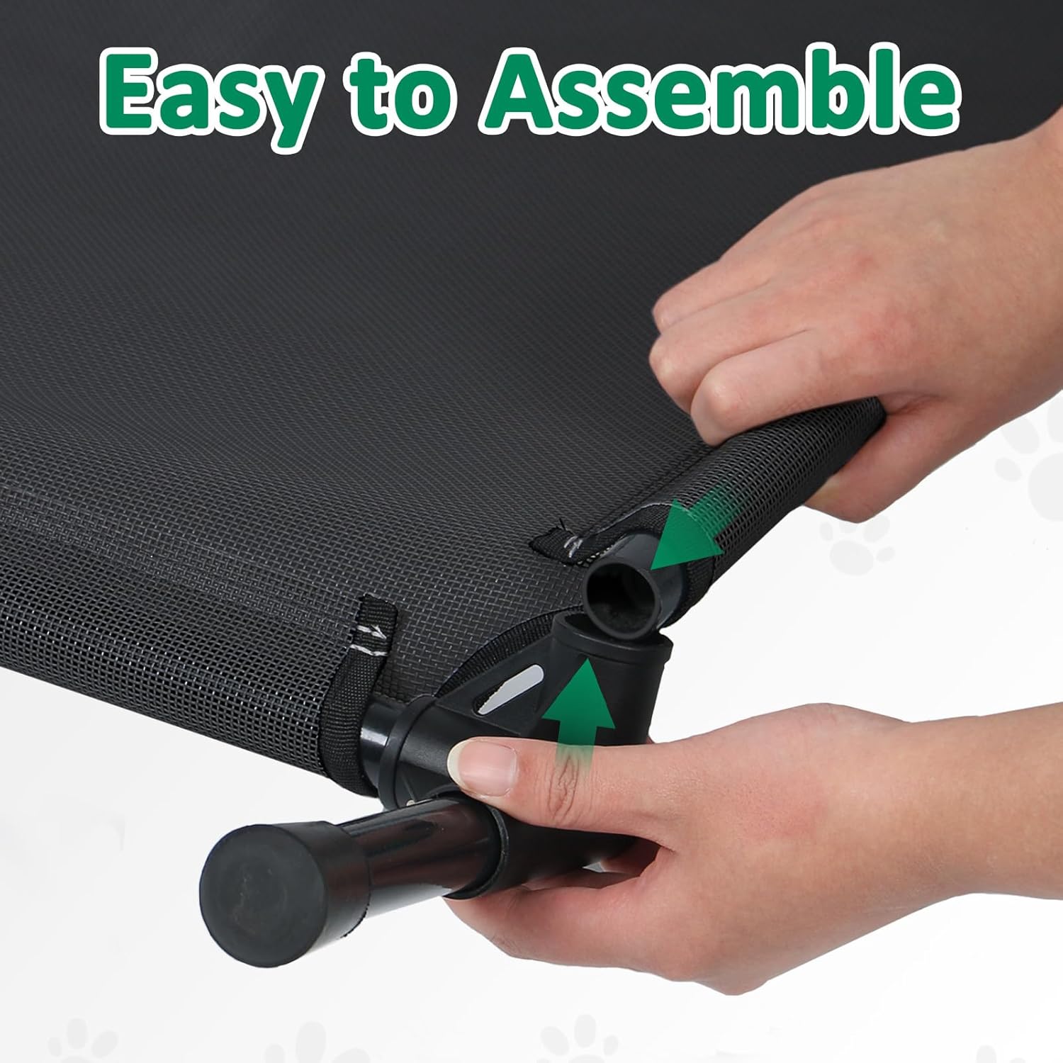 XL Elevated Dog Bed Outdoor, Cooling Raised Dogs Cot with Breathable Mesh & Anti-Slip Feet, Lifted Dog Beds with Frame, High Pet Hammock (XL, Black)