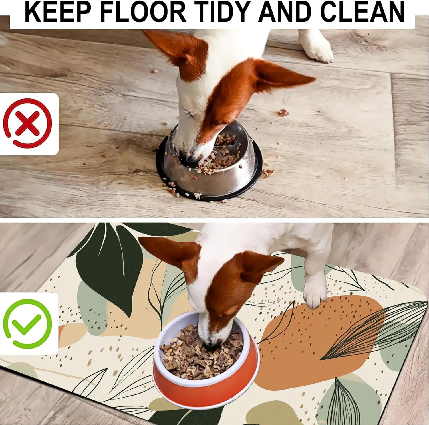 - Super Absorbent & Stain-Resistant:Made with ultra-absorbent fabric, this pet feeding mat quickly soaks up water, milk, or food spills, keeping the area around bowls clean and dry. Say goodbye to wet paw prints and sticky residues—perfect for messy eaters and playful drinkers.