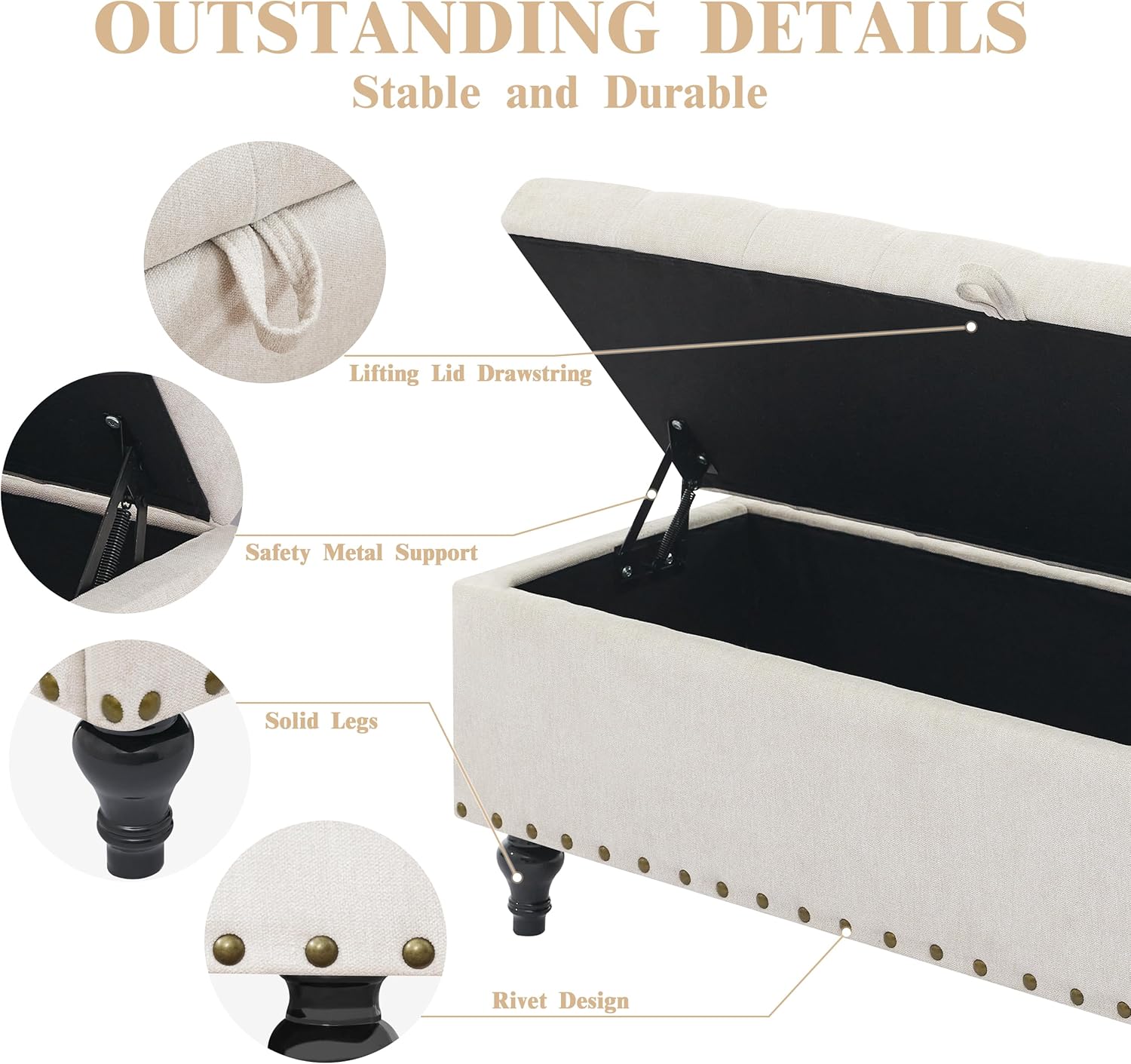 - Strong & Reliable Build: Crafted with 1.35" thick high-quality MDF, this sturdy storage ottoman bench holds up to 330 lbs—perfect as a bedroom storage bench with lasting durability and stable support