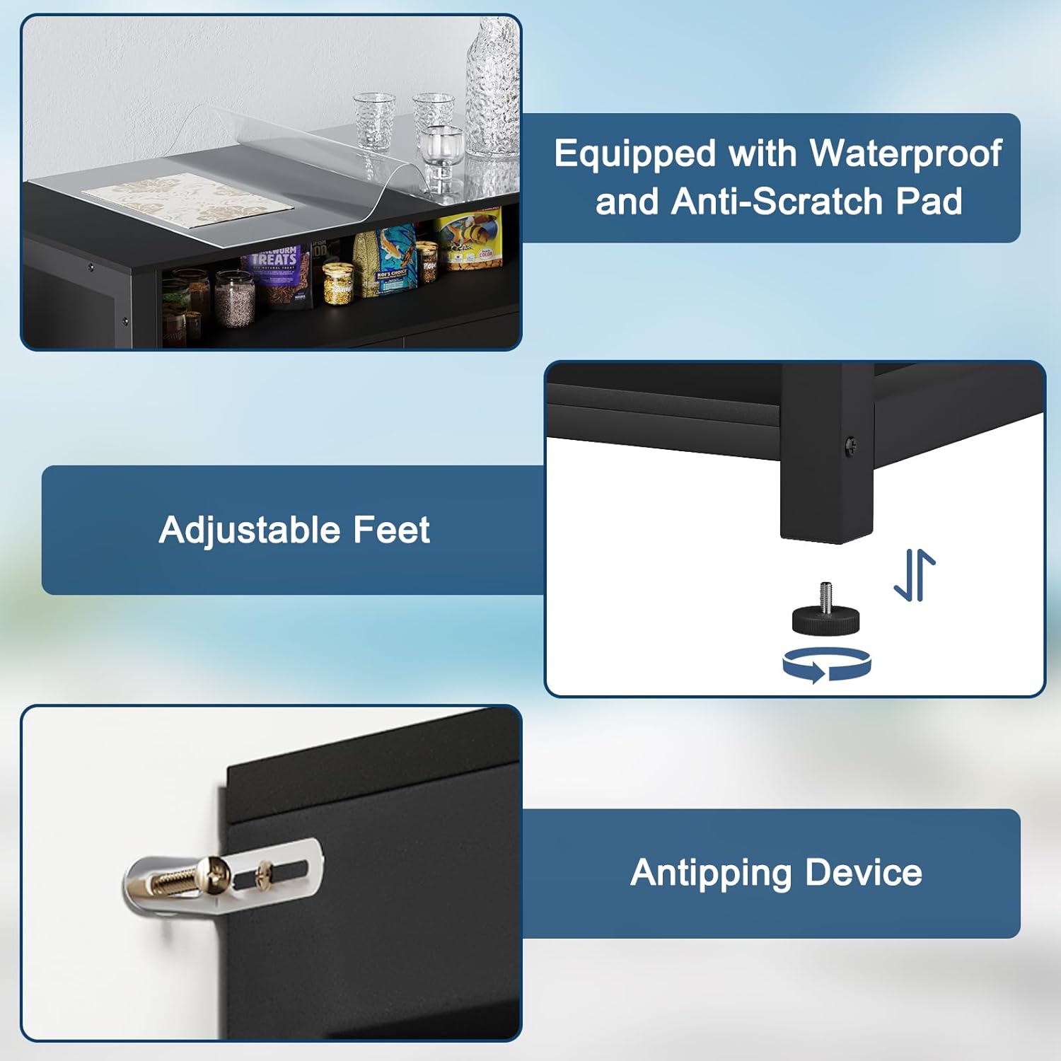 - Power Outlet – Never worry about tangled cords again! This advanced aquarium stand comes equipped with a built-in power strip featuring 3 AC outlets and 2 USB ports, making it effortless to power heaters, filters, pumps, and LED lights—all while keeping wires neatly organized.