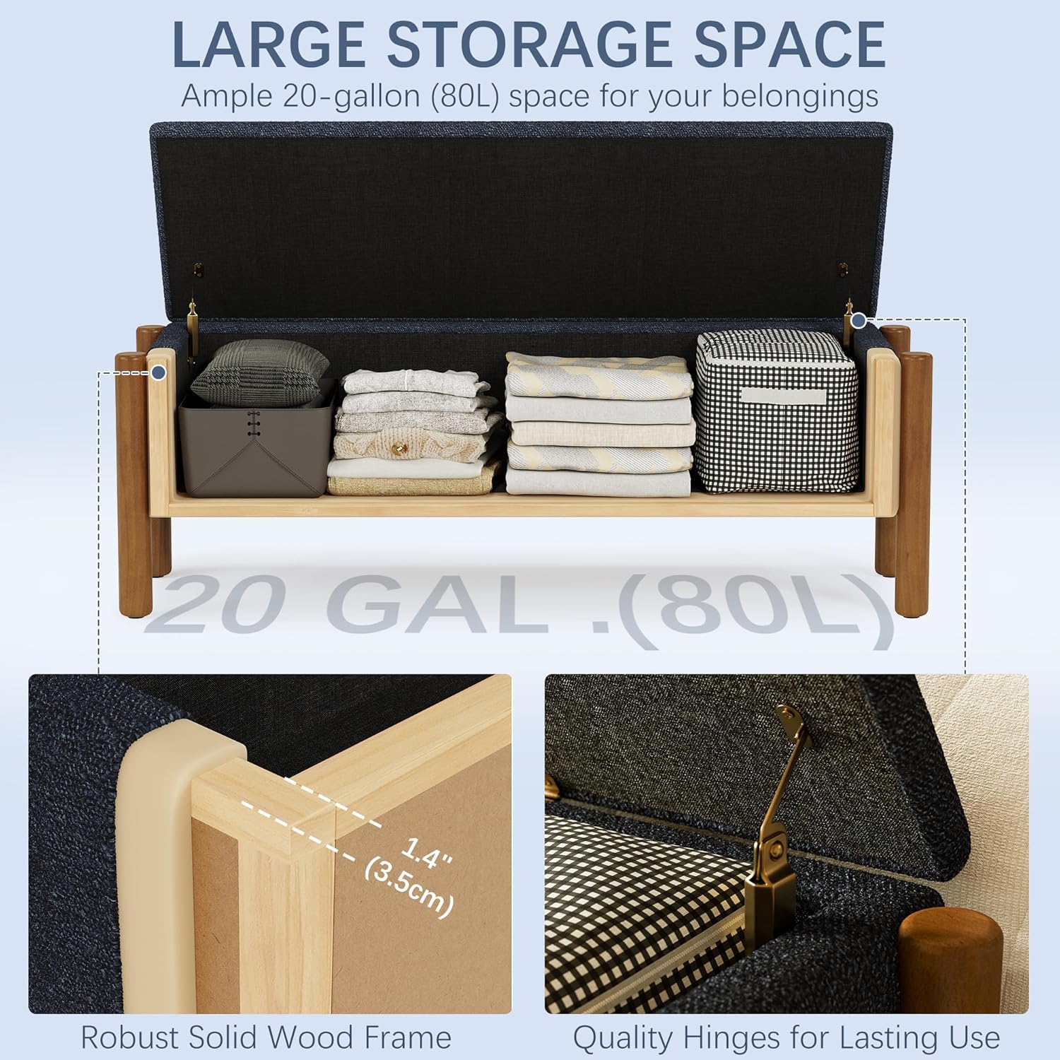 - ELEGANT & TIMELESS DESIGN: Elevate your space with this stylish Storage Bench featuring genuine walnut wood-grain legs and plush 5.5cm cushioned seating. Wrapped in skin-friendly loop yarn fabric, this chic Ottoman Bench seamlessly enhances bedroom, end of bed, entryway, or livingroom decor while offering lasting comfort.