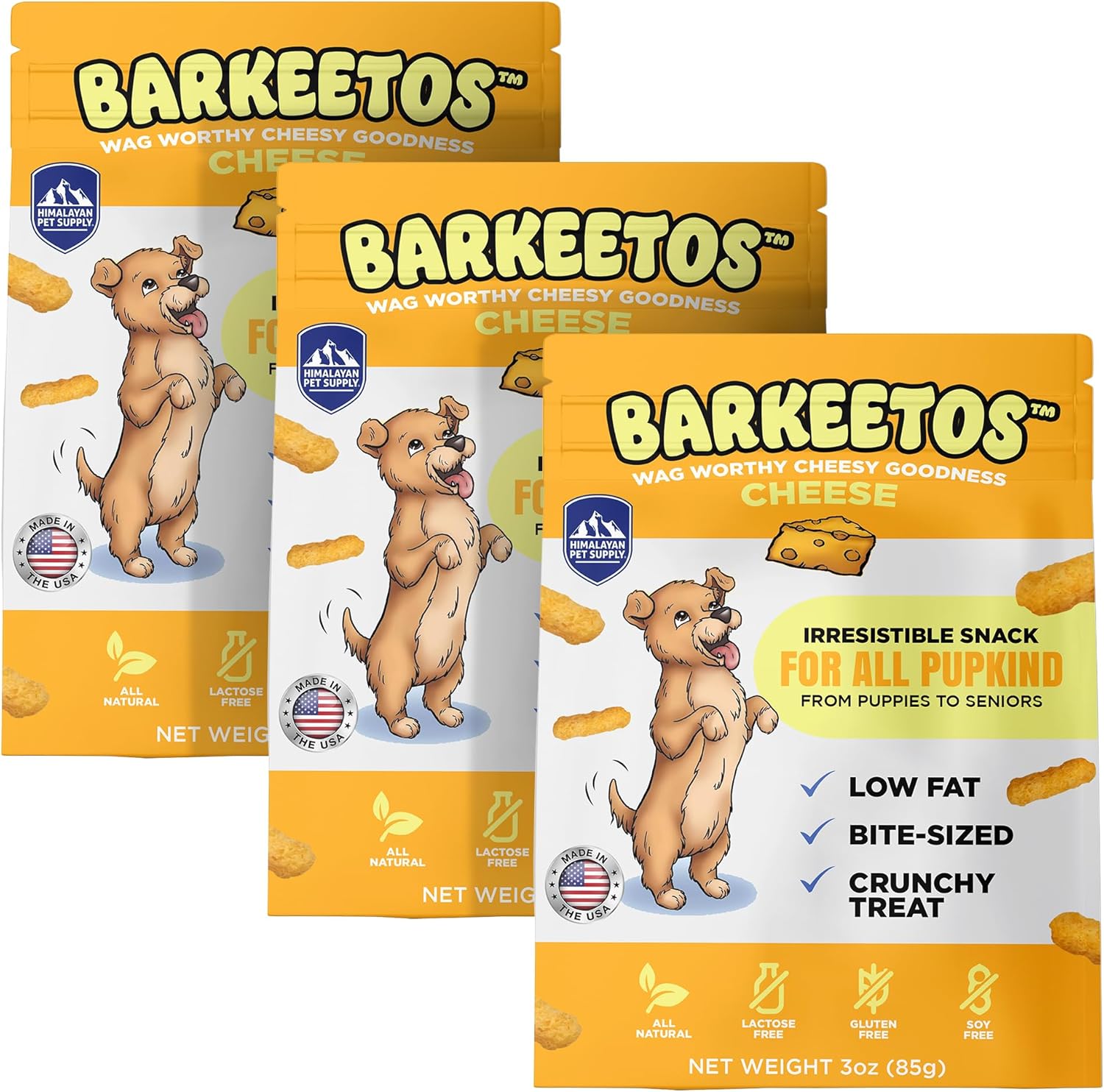 - IRRESISTIBLY CRUNCHY & DELICIOUS DOG TREATS – Perfect for puppies, adult dogs, and senior companions, Barkeetos are crunchy, cheesy dog snacks made with real Himalayan cheese and bacon. These natural, grain-free, and lactose-free treats provide a satisfying crunch that supports healthy chewing and keeps tails wagging.