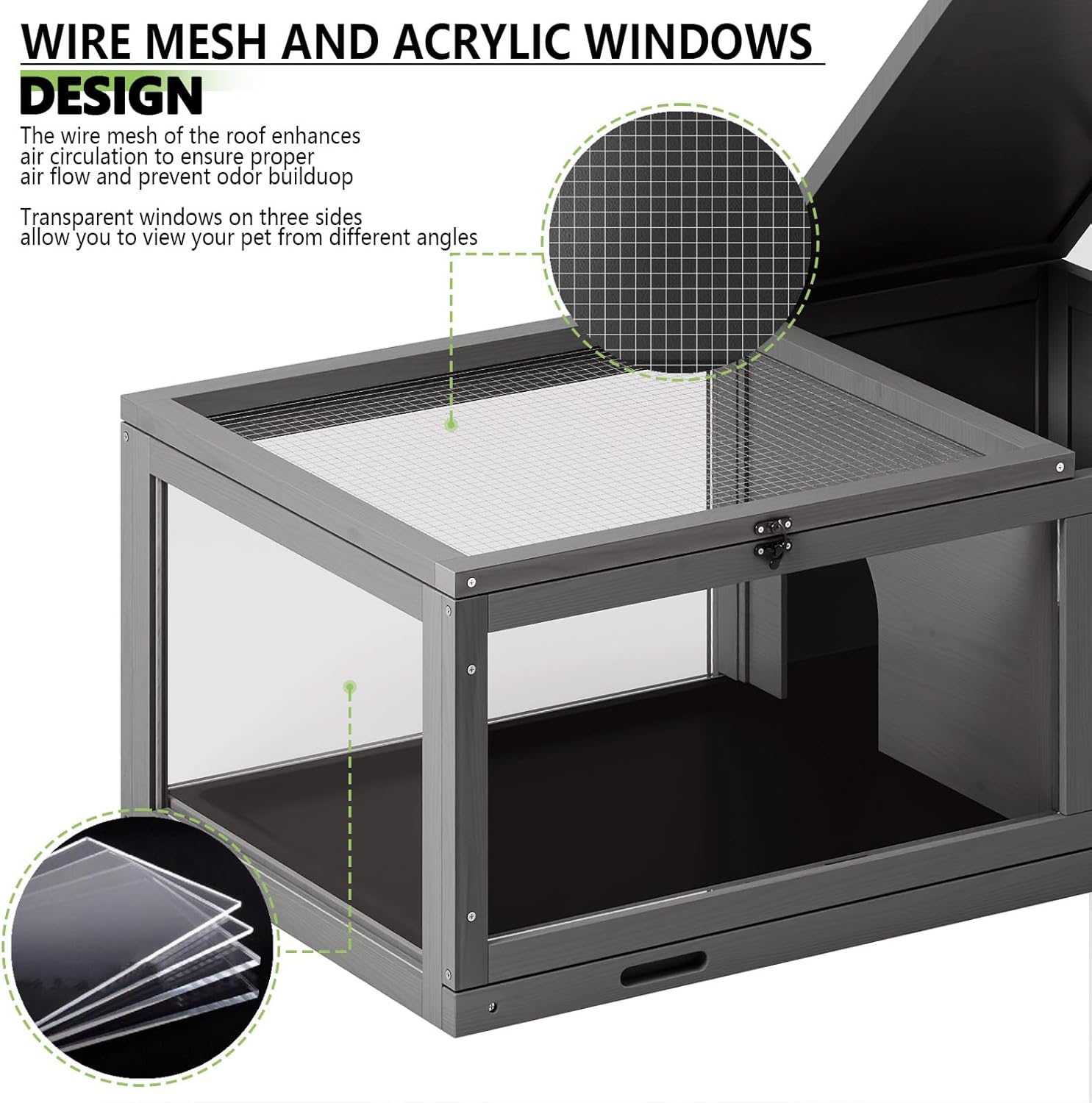 - āØćEasy to Clean & Assembleć: Note: Lights are not included. The Tortoise Habitat is designed with a large removable plastic tray to prevent bottom rot, making maintenance hassle-free. With two operable top lids secured by wooden brackets, assembly takes only 20-30 minutes, ensuring convenience for pet owners