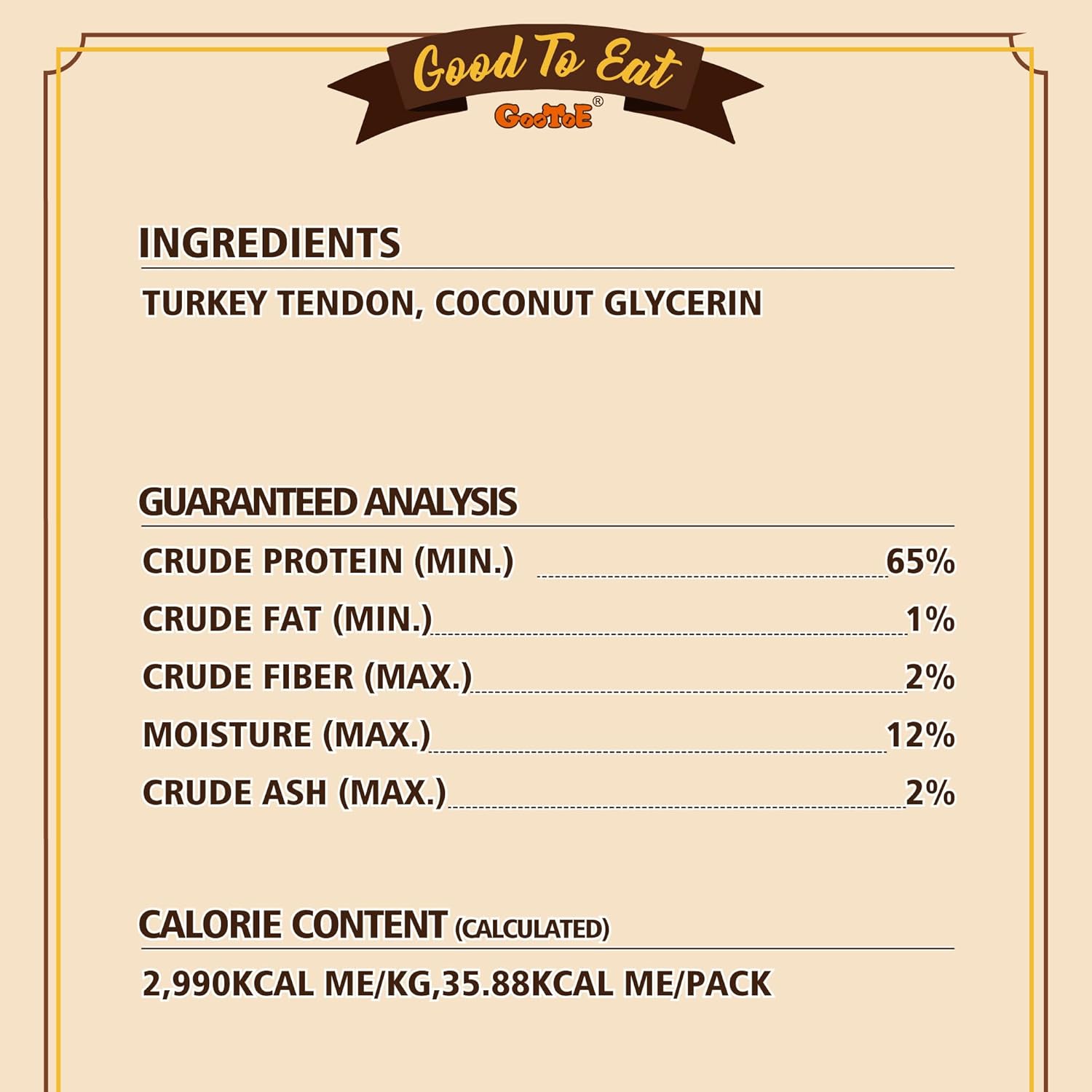 - USA-Sourced Turkey Tendon: GooToE turkey tendon dog treats are made entirely from premium USA-sourced turkey, a commitment to the highest standards of quality and taste.