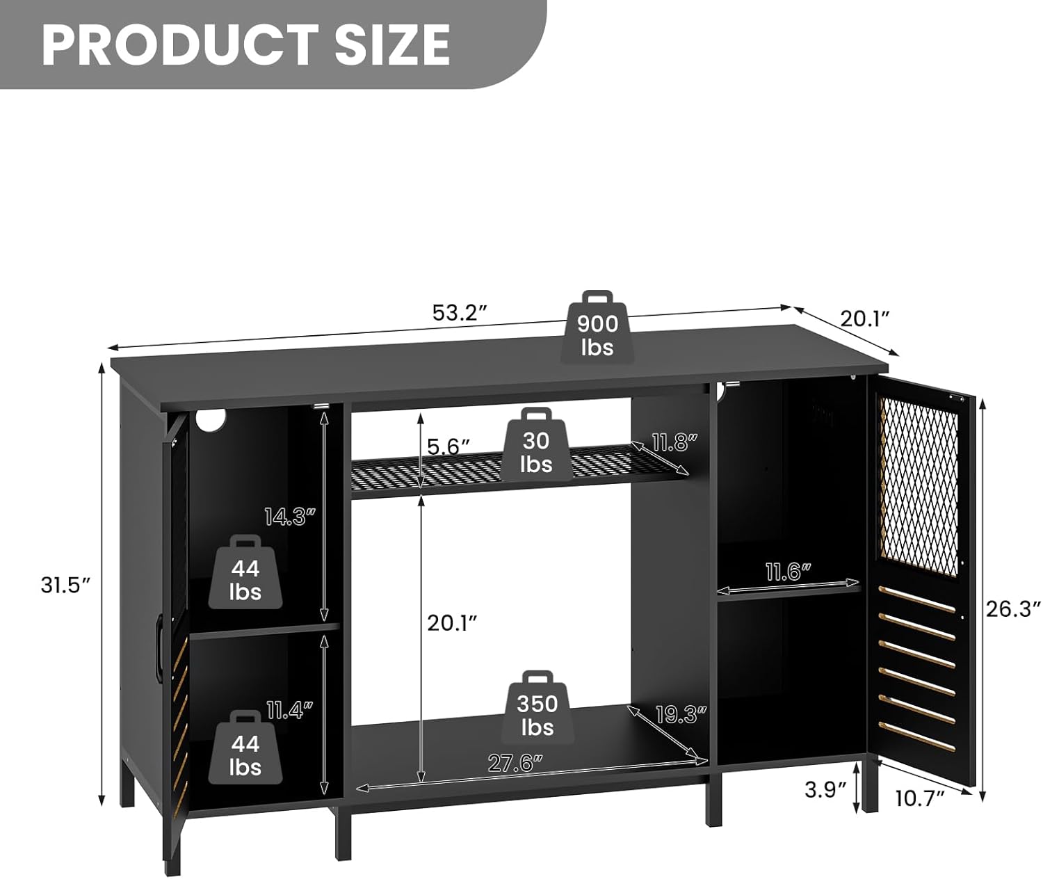 - 【Flexible Storage】The fish tank stand open base section accommodates 10-15 gallon aquariums, while the middle metal shelf organizes fish food and cleaning tools. Dual cabinets feature adjustable shelves that adapt to item heights,stack small supplies or remove shelves to easily store tall items, meeting all your storage needs.